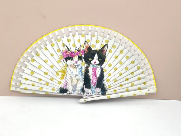 Descubre la elegancia y frescura de nuestro Abanico Gatitos Lunares. Un accesorio imprescindible que combina tradición y estilo moderno, perfecto para acompañarte en los días más cálidos o para añadir un toque sofisticado a tu look.