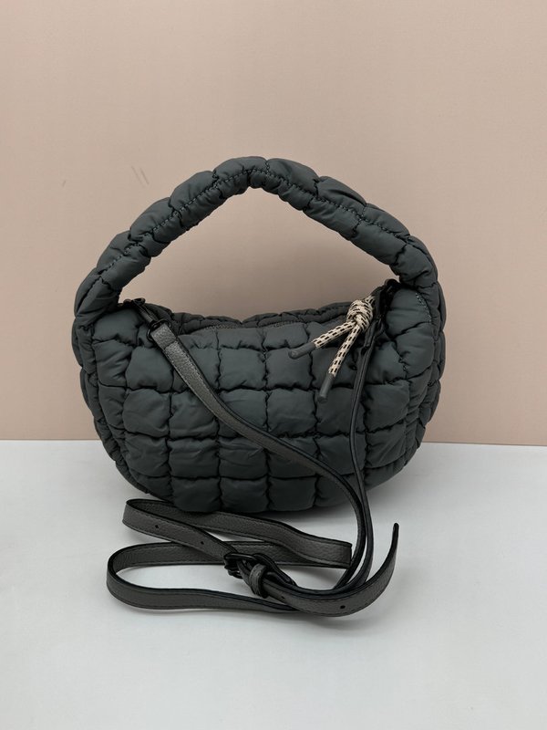 Eleva tu outfit con el Bolso Acolchado Cuadros GriS Oscuro, la definición perfecta de versatilidad y elegancia. Este bolso ha sido diseñado para ser el protagonista de tu armario.