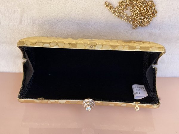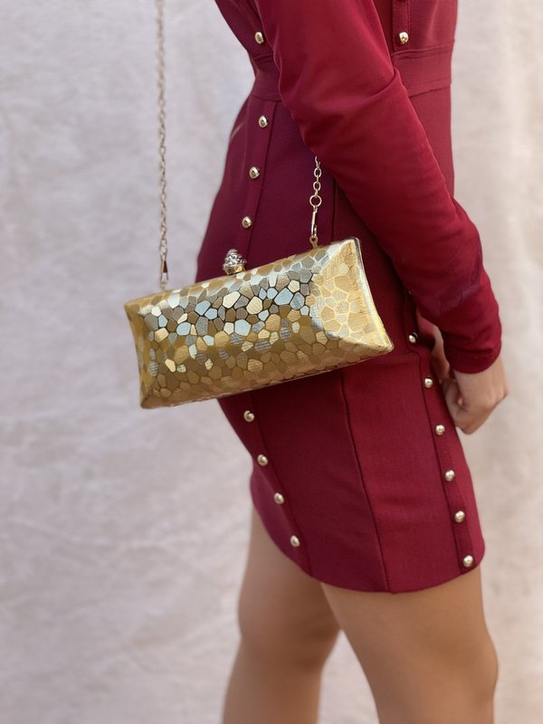 Eleva tu outfit con el Bolso De Fiesta Dorado, la definición perfecta de versatilidad y elegancia. Este bolso ha sido diseñado para ser el protagonista de tu armario.