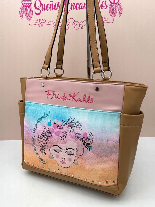 Eleva tu outfit con el Bolso Tote Frida Kahlo Aquarel, la definición perfecta de versatilidad y elegancia. Este bolso ha sido diseñado para ser el protagonista de tu armario.