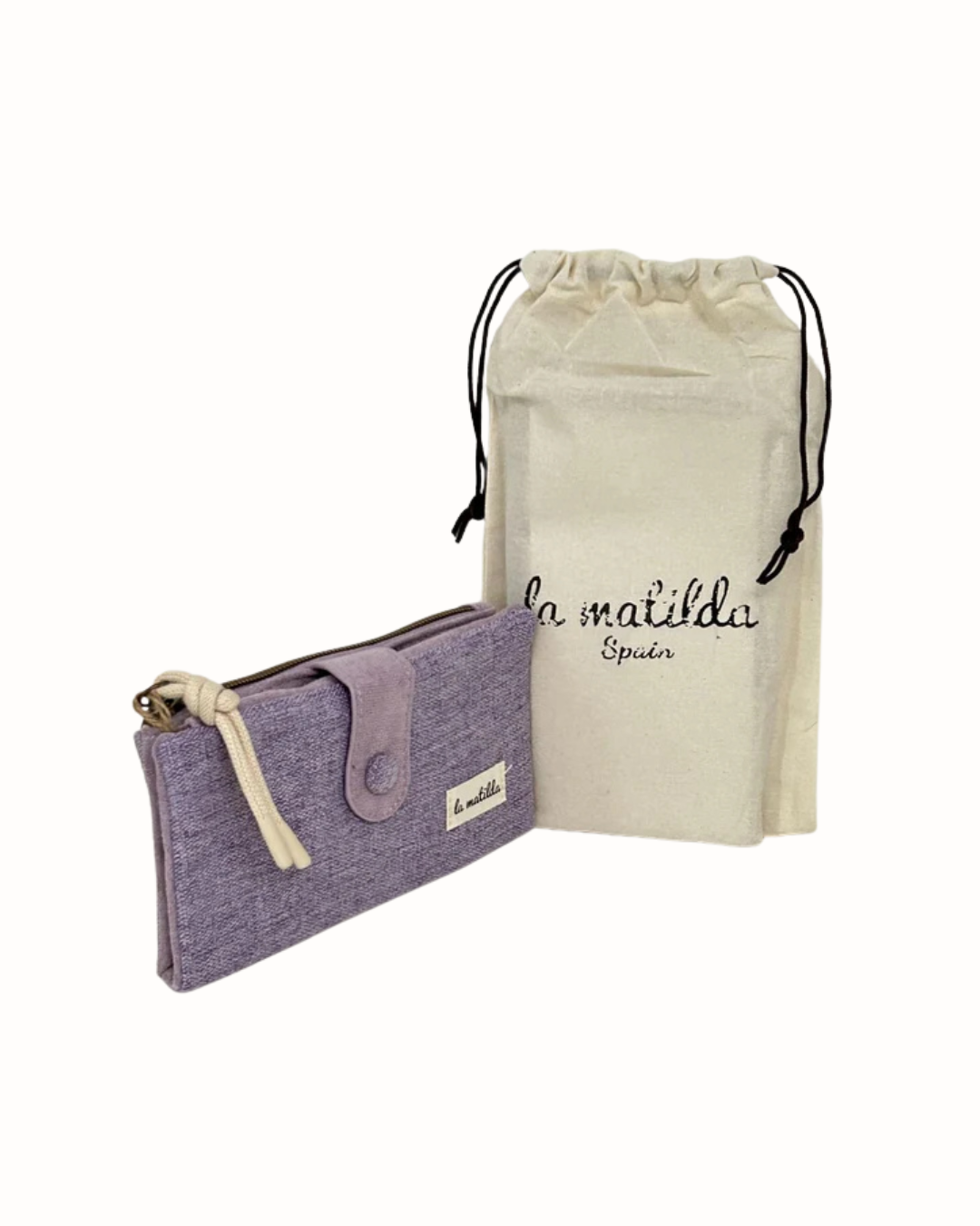 - Cartera de tela con múltiples compartimentos, forro interior estampado y cremallera bronce. Diseño ecológico de La Matilda, con botón forrado y monedero exterior.