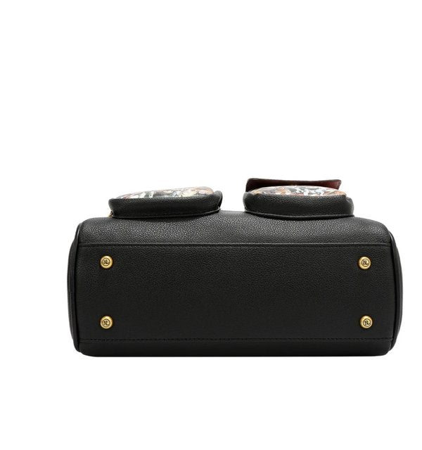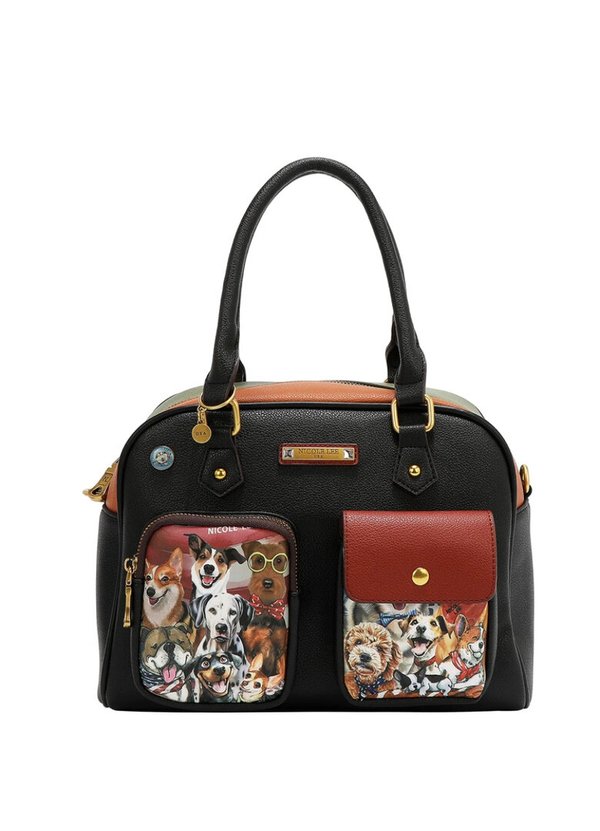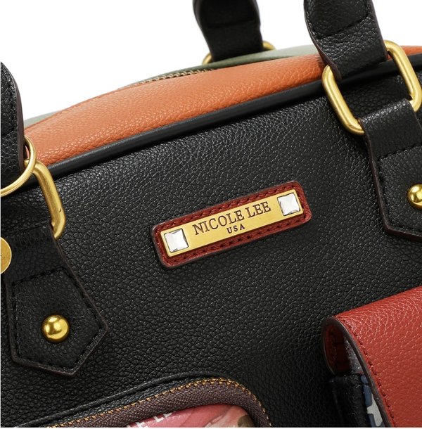 Detalles del producto (Set de 3 piezas: Bolso de mano, Bandolera, Cartera):Exterior de cuero veganoPlaca con logotipo grabado y pedreríaTiradores de cremallera con logotipo grabadoHerrajes en tono doradoForro interior exclusivo en poliésterPeso: 1,40 kgBolso de mano:Asas superiores redondeadas dobles (caída de 17,8 cm) con dije circular auténtico de Nicole LeeCierre superior extendido con cremalleraUn bolsillo frontal con cremalleraUn bolsillo frontal con cierre magnéticoAnillas laterales para correa opcionalTachuelas metálicas en la base para mayor protecciónBolsillo interior trasero con cremallera, placa con logotipo y correa para llaves2 bolsillos interiores delanteros para smartphone o carteraMedidas: 30,5 cm (largo) x 12,7 cm (ancho) x 22,9 cm (alto)Bandolera:Asas planas dobles (caída de 12,7 cm)Cierre superior principal con cremalleraAnillas laterales para correa cruzada opcionalBolsillo interior delanteroIncluye correa ajustable y desmontable (115,6 – 123,2 cm)Medidas: 23,5 cm (largo) x 8,9 cm (ancho) x 15,9 cm (alto)Cartera:Cierre envolvente con cremalleraForro interior liso2 compartimentos para billetes, 4 ranuras para tarjetas y 1 bolsillo central con cremallera para monedasMedidas: 19,1 cm (largo) x 2,5 cm (ancho) x 10,2 cm (alto)