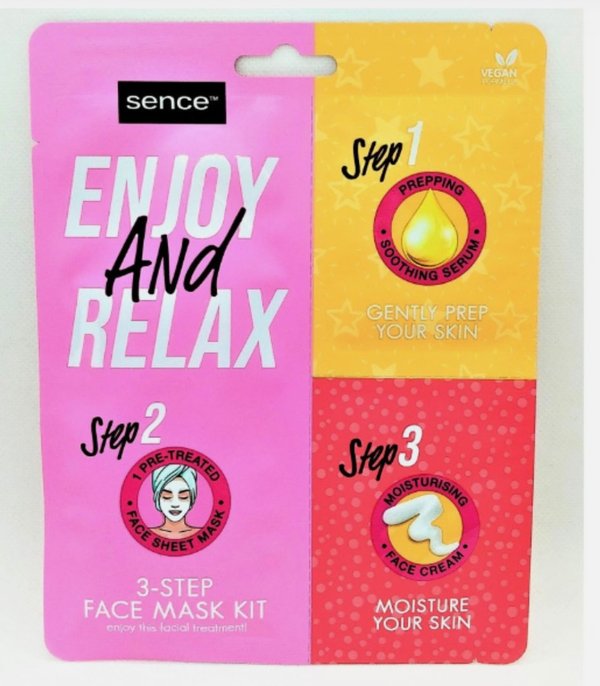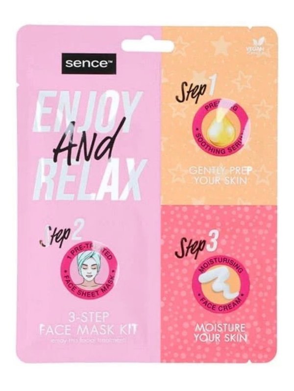 para antes de la mascarilla, durante la mascarilla y para despues de la mascarilla,trae un serun calmante y refrescante para preparar la pielpaso 2 mascarilla hidratentey pasa tres, crema post mascarilla100 % vegana con manteca de carité