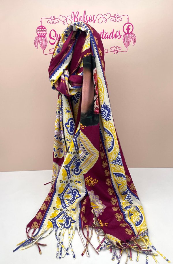 Pañuelo Tipo Pasmina Frida Kahlo Burdeos