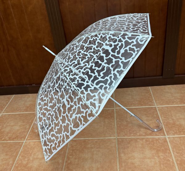 Protege en todo momento de la lluvia con este precioso paraguas grande de inspiración osito Tous en color blanco. Con un diseño adorable y funcional, este paraguas no solo te mantendrá seco en los días lluviosos, sino que también añadirá un toque de estilo a tus looks. La sombrilla grande proporciona una amplia cobertura, manteniéndote protegido incluso en los aguaceros más intensos. Además, su diseño inspirado en el famoso osito Tous le da un toque único y encantador. ¡No dejes pasar la oportunidad de lucir este hermoso paraguas en los días grises y lluviosos!