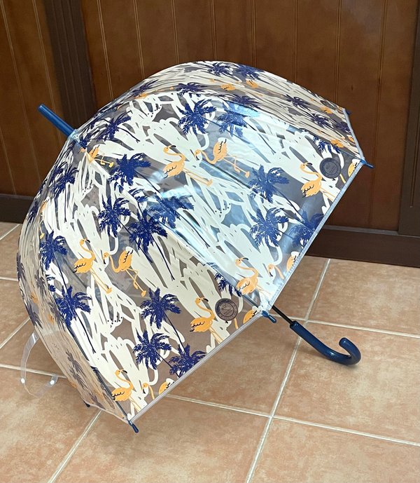 Paraguas tipo seta con estampado de flamencos y palmeras