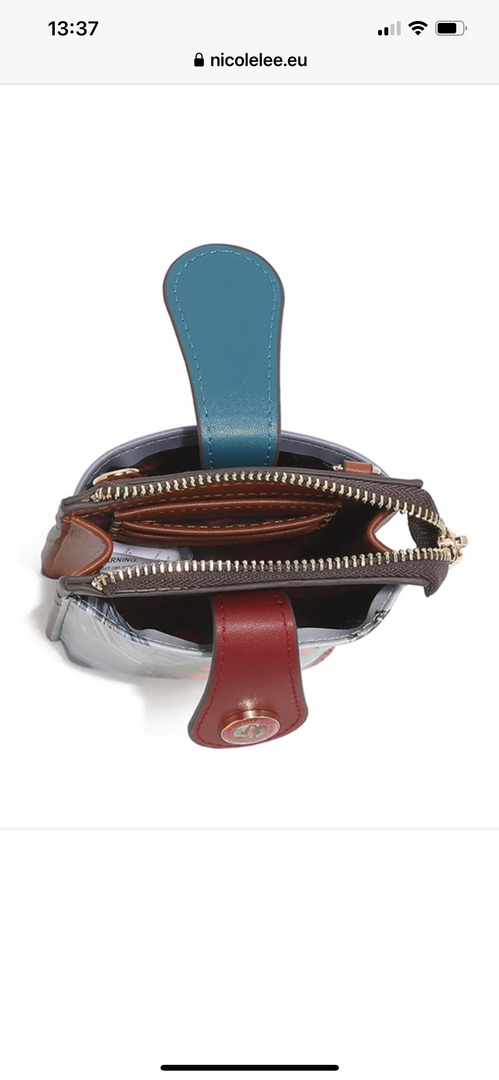 Exterior de cuero vegano granuladoCierre con botón a presión3 compartimentos (central con cremallera y bolsillos delanteros y traseros con cierre de botón a presión)Anillos en D para fijación de correa cruzada opcionalHerrajes doradosPlaca de identificación grabada con logotipoForro interior estampado premium en poliésterTarjetero interior con 3 ranuras para tarjetas en el compartimento central con cremalleraIncluye bandolera ajustable y desmontableTamaño: 11 cm x 5 cm x 19 cm