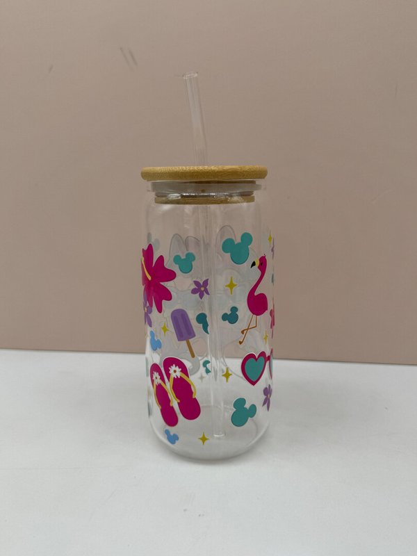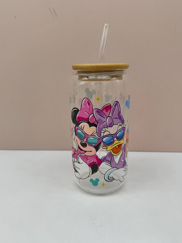 Taza Vidrio con Tapa y Pajita Minnie y Daysy